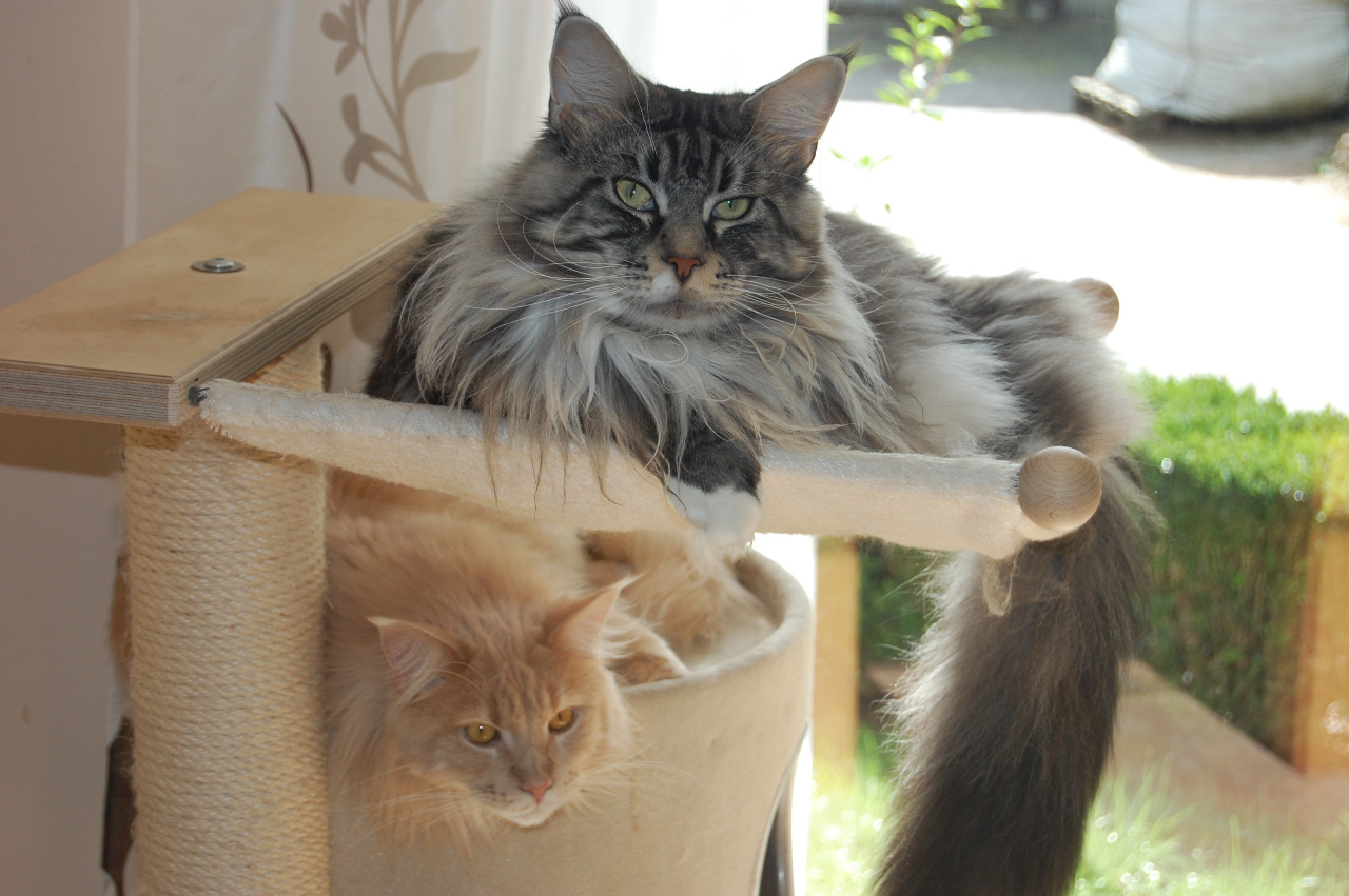 Wir sind Azzaro (silver classic tabby) und Quinn (cream). Maine-Coon Kater und richtige Hamburger Jungs.